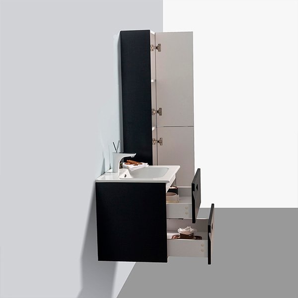 Este gabinete sanitario con un gabinete lateral (opcional) es simple y elegante, hecho pensando en un fácil mantenimiento e instalación. El diseño no solo con estilo sino con la intención de tener fines prácticos.
