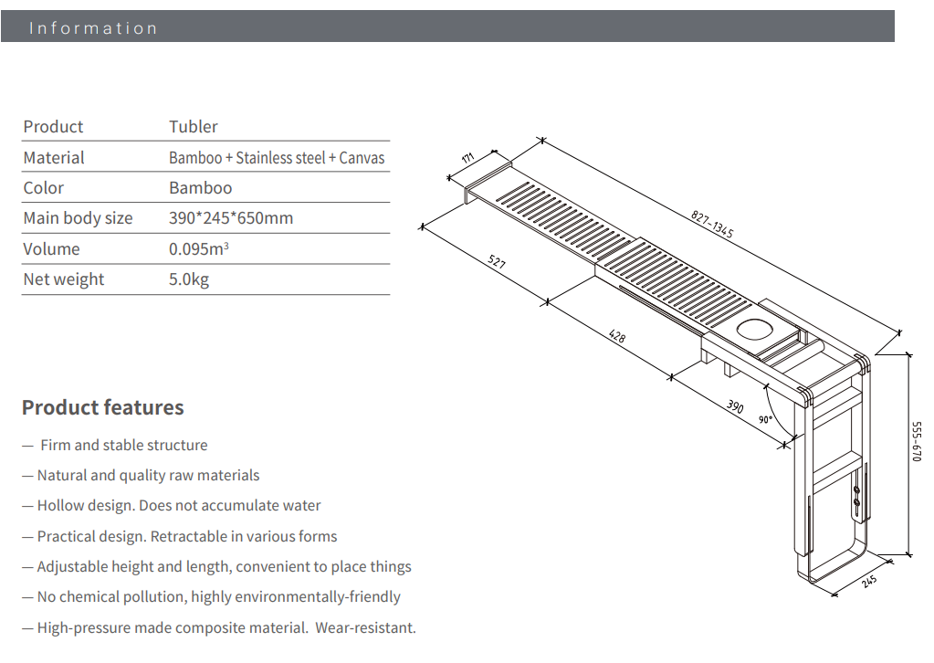 TUBLER es una combinación de repisa y mesa que ahorra espacio y es muy práctica para casi todas las bañeras del mercado.